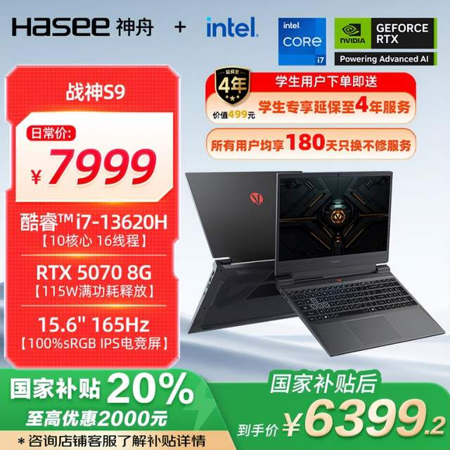 首先给大家推荐这款战神S9——RTX 5070显卡搭配13代i7处理器,堪称性价比首选,京东国补到手价6399.2元