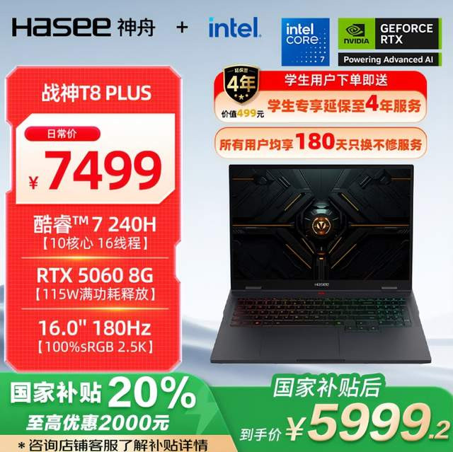 第二款推荐的是战神T8 Plus——RTX 5060显卡与全新私模,散热性能兼具外观,京东国补到手价5999.2元