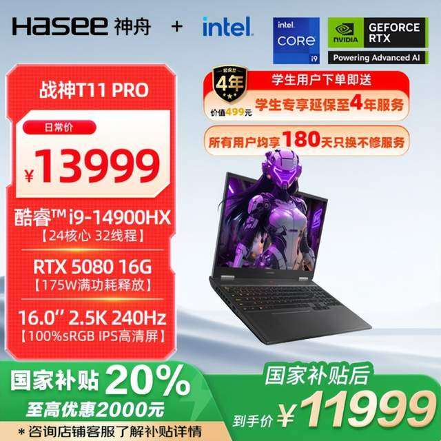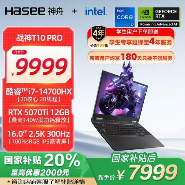 对于有专业3D 建模、影视后期等高生产力需求或极致游戏需求的学生党,神舟战神T11 Pro 与T12 Pro 两款高端机型,将性能推向新高度。